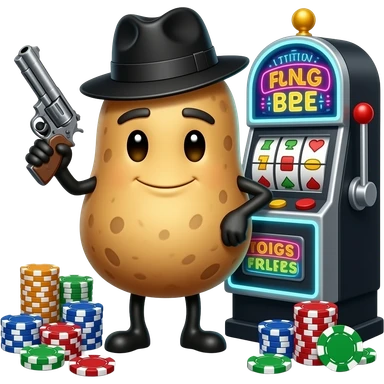 A Potato holding a guns gambling slots gangster emoji