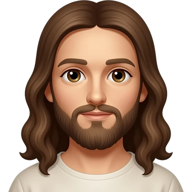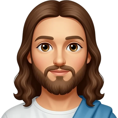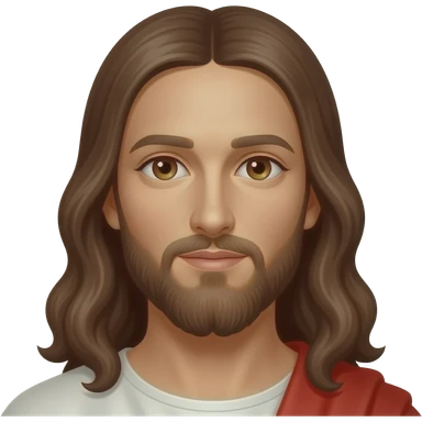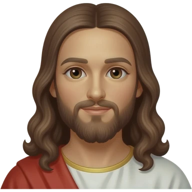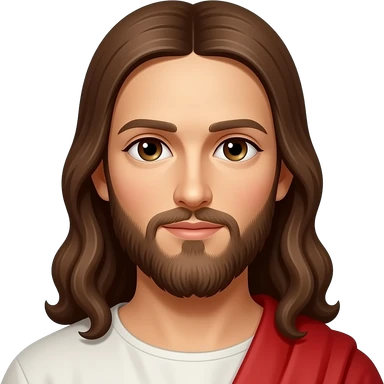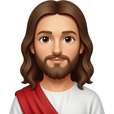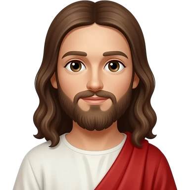 Jesus from Christian Mythology with brown eyes, long brown hair, white and red metallic toga emoji