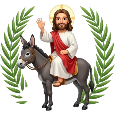 Jesus on a donkey and people waving palm branches in the background emoji
