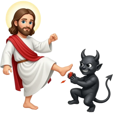 Jesus kicking a demon on the butt emoji