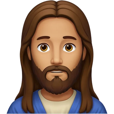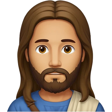 Jesus, Son of God from Gods and Goddesses with long brown hair, cream outfit emoji