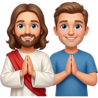 Jesus and a modern day man with light brown hair smiling and praying together emoji