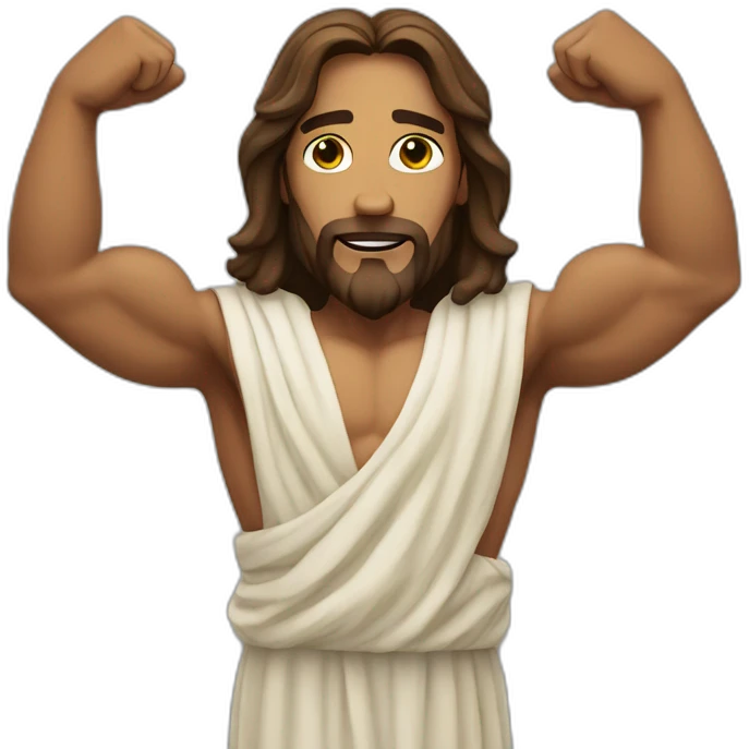 Jesus showing off biceps emoji | AI Emoji Generator