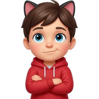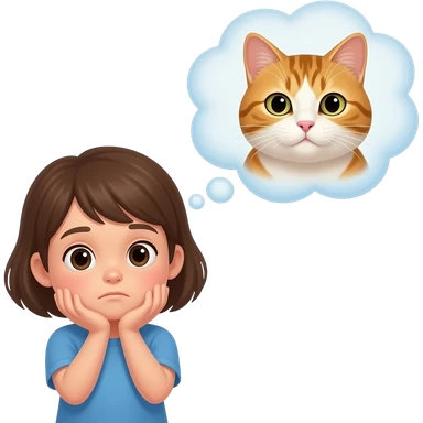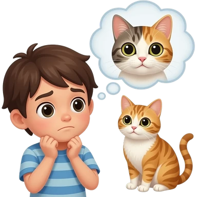 a shrugging kid with a thought bubble, thinking about a cat emoji