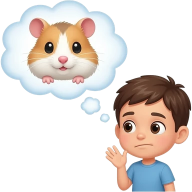 a shrugging kid with a thought bubble, thinking about a hamster emoji