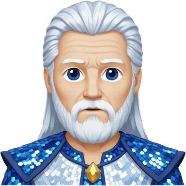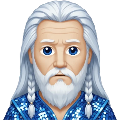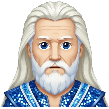 Odin, God of Wisdom from Gods and Goddesses with long white hair, blue and white sequin outfit emoji