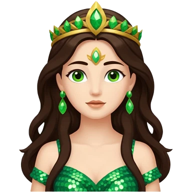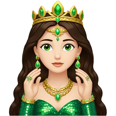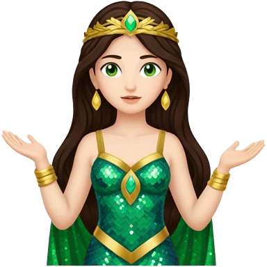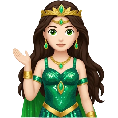 Juno, Goddess of Marriage from Gods and Goddesses with long dark brown hair, green sequin outfit emoji