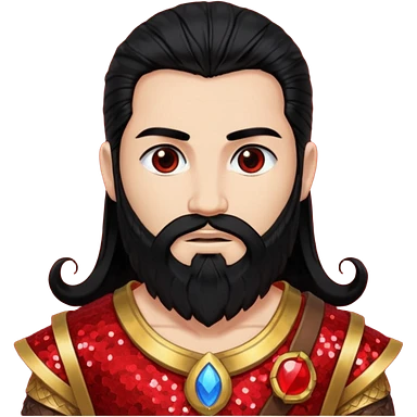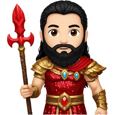 Mars, God of War from Gods and Goddesses with long black hair and beard, red and black sequin outfit, light tan skin emoji