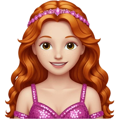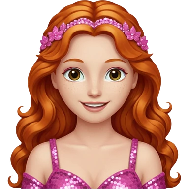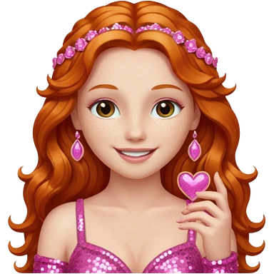 Venus, Goddess of Love from Gods and Goddesses with long ginger hair, pink sequin outfit emoji