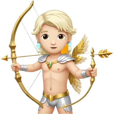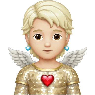 Cupid, God of Love from Gods and Goddesses with long platinum blonde hair, cream sequin outfit emoji
