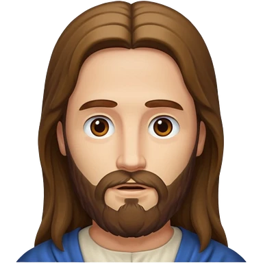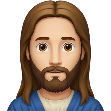 Jesus Christ with Blue eyes, brown long hair, white outfit emoji