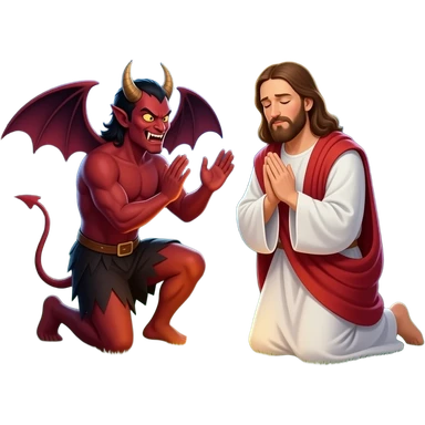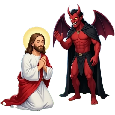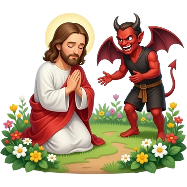 Jesus being tempted in the garden by Satan while praying emoji