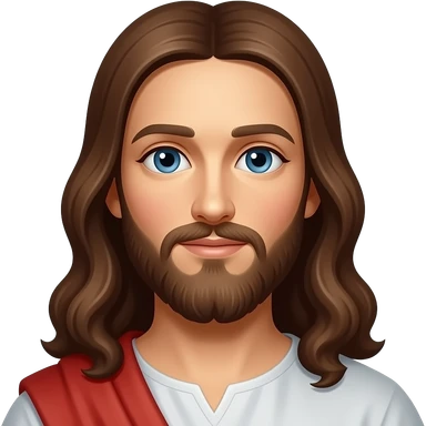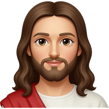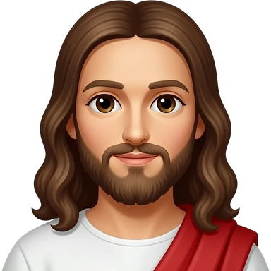 Jesus from Christian Mythology with brown eyes, long brown hair, white and red metallic toga emoji