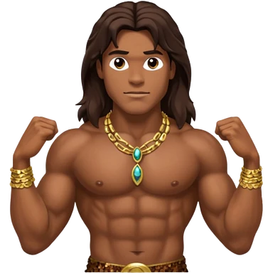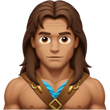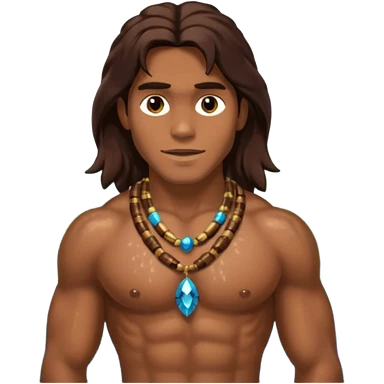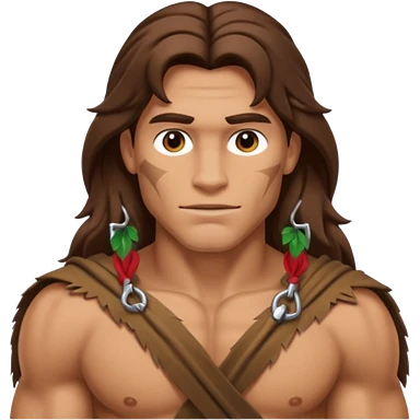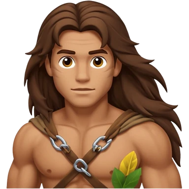 Tarzan with long dark brown hair, brown sequin loincloth, shirtless with necklace emoji