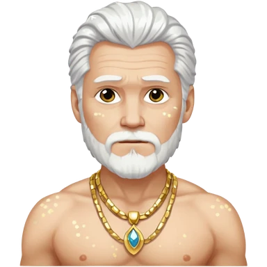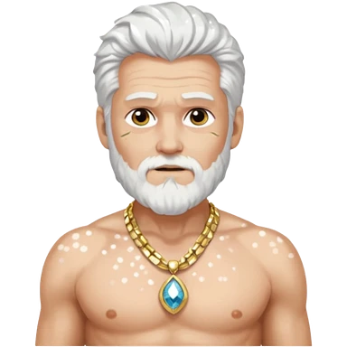 Odin with white hair, white sequin loincloth, shirtless with necklace emoji