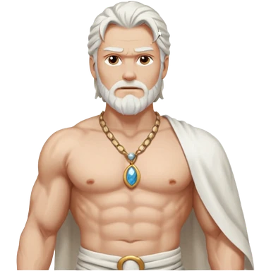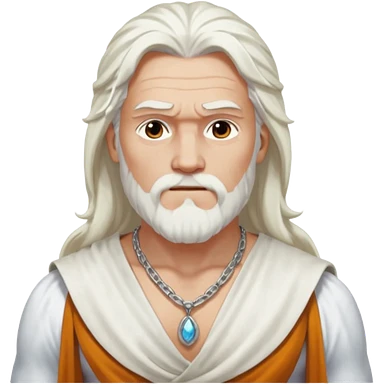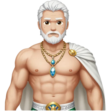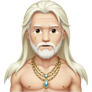 Odin with long white hair, white loincloth, shirtless with necklace emoji