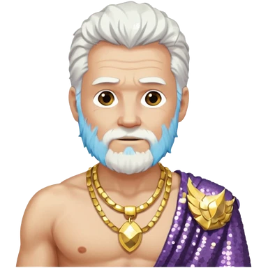 Odin with long white hair, white sequin loincloth, shirtless with necklace emoji
