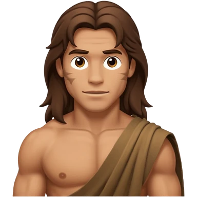 Jesus with long brown hair, ivory sequin baggy loincloth, shirtless with necklace emoji | AI Emoji Generator