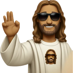Jesus with a mullet, baseball hat and dark sunglasses emoji