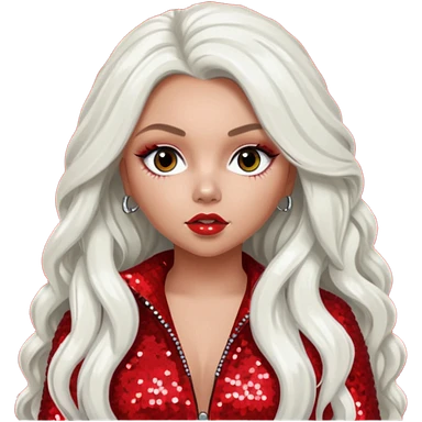 Jesy Nelson from Little Mix with long white hair, red sequin outfit emoji