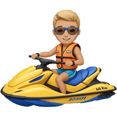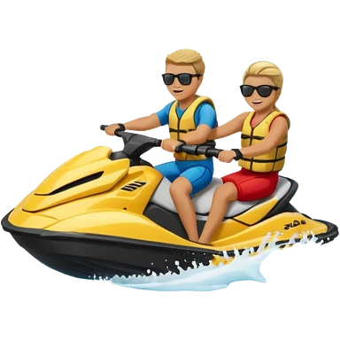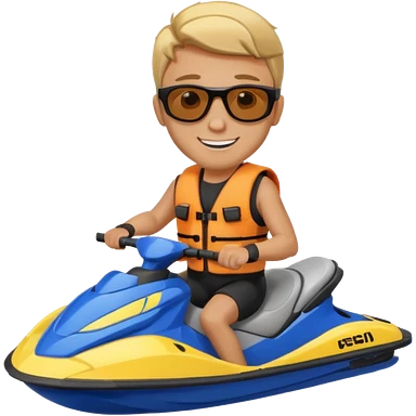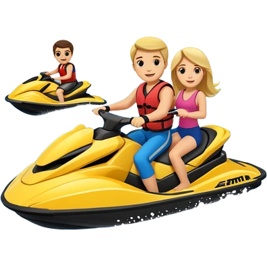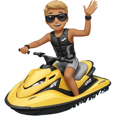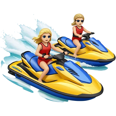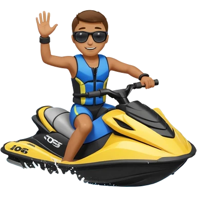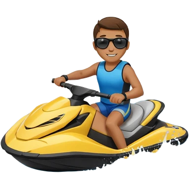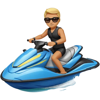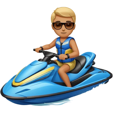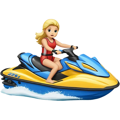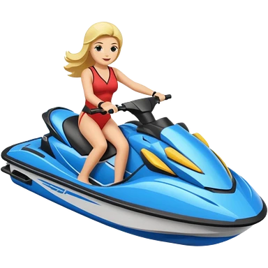 jet ski (red black and white all in the same amount. maybe a red a bit more dominant) on the sea. show the sea under the jet ski - blue with turquoise. no sky - white background instead. DO NOT REMOVE THE SEA AND THE WHITE WHEN FINALIZING! emoji