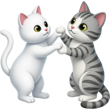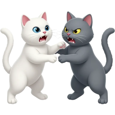 Gato blanco sin otro color y gato gris jugando enojados emoji