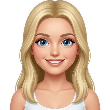 femme blonde, yeux bleus, sourire, rêveuse, cheveux longs lisses, belle emoji