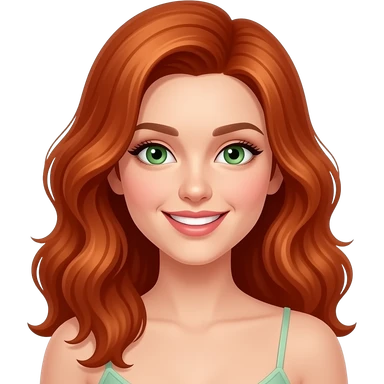 Une Fille rousse cheveux longs et aux yeux bleus , les cheveux detaché ondulé emoji