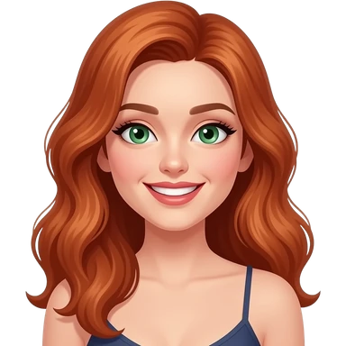 jeune femme rousse, cheveux ondulés, grand sourire, maquillage, botox emoji | AI Emoji Generator