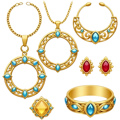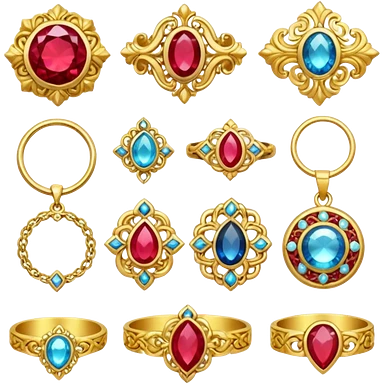 Jewelry art icon, golden ring with a ruby viewed through a magnifying glass, visible pliers beside it, minimalistic style, clean lines, transparent background. emoji