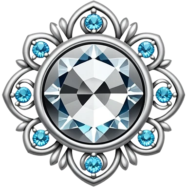 Make it 3D emoji style: add a silver jewelry setting to the round cut white diamond with holographic shine and sparkles emoji