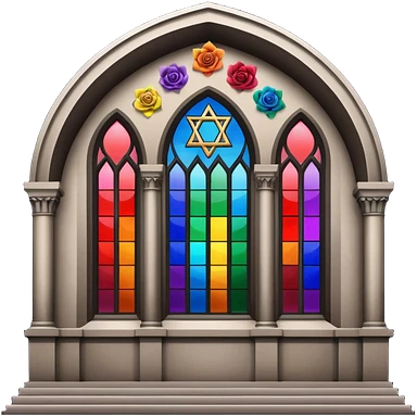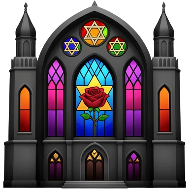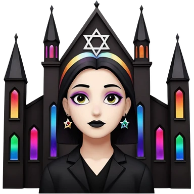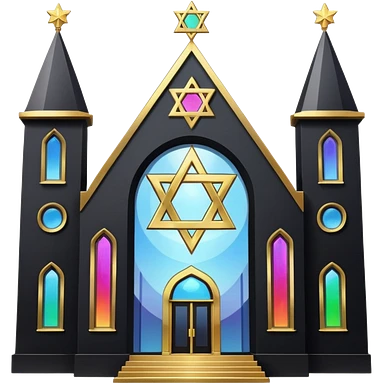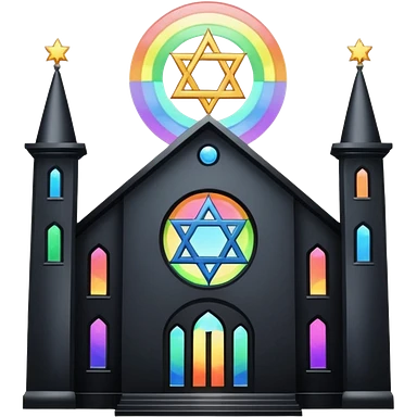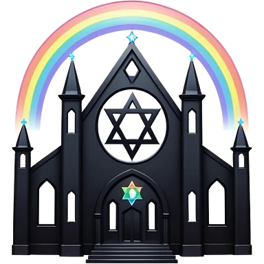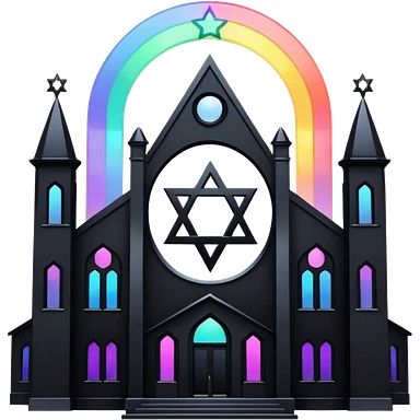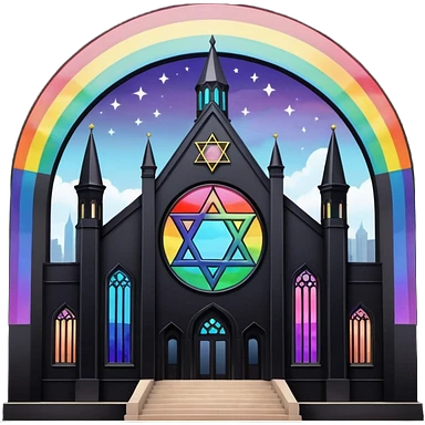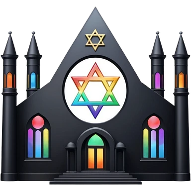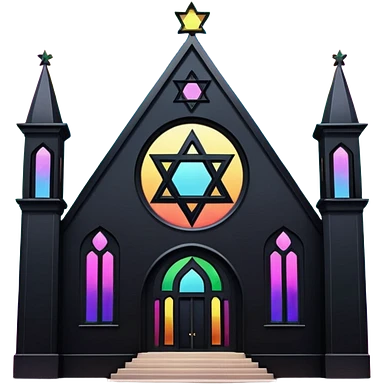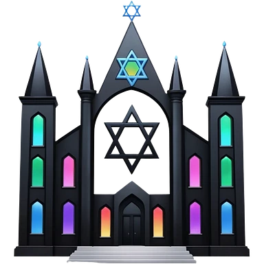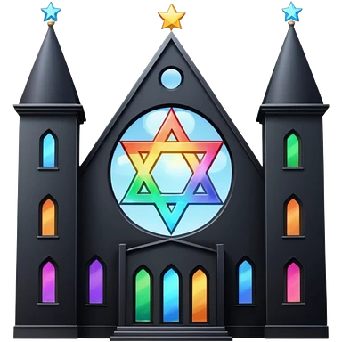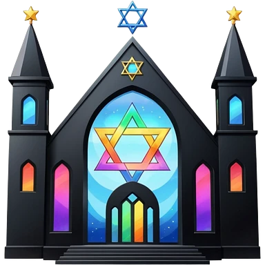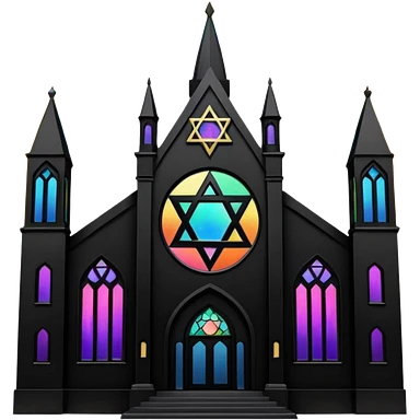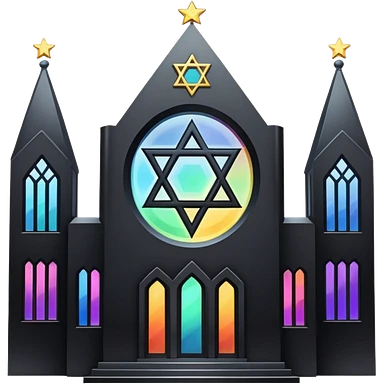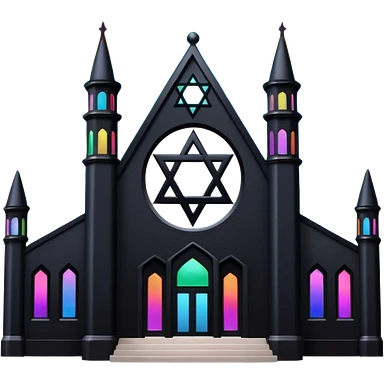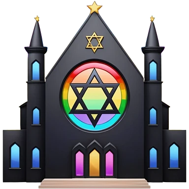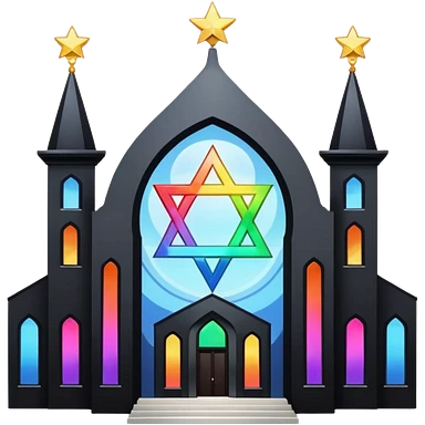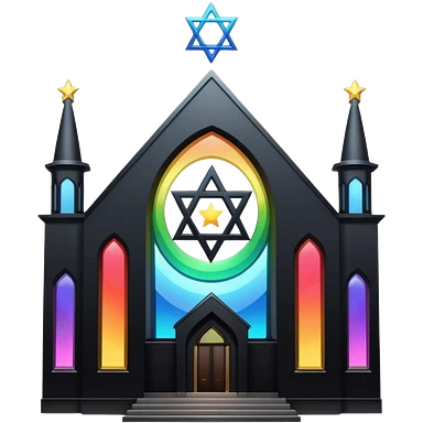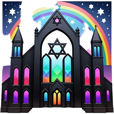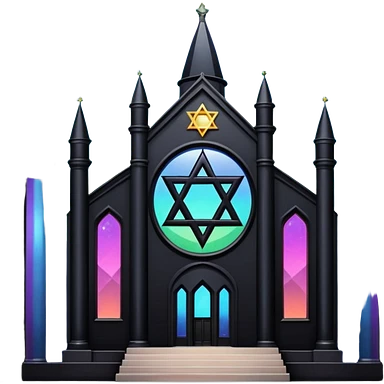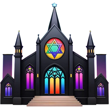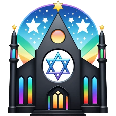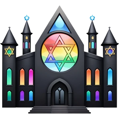 jewish synagogue temple in dark goth aesthetic style with black building and rainbow tint glass windows and star of david and celestial symbolism of peace and acceptance emoji | AI Emoji Generator