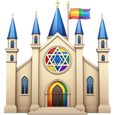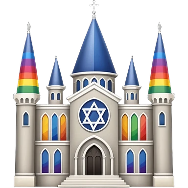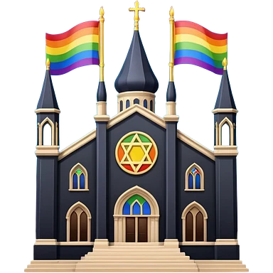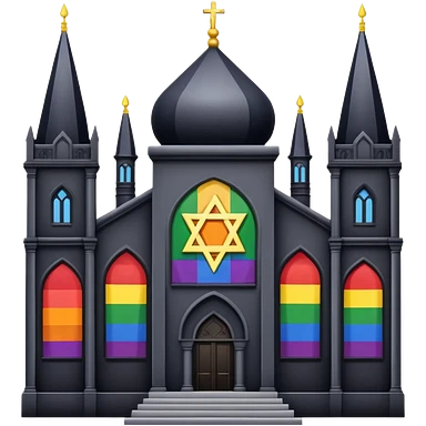 jewish synagogue temple in dark goth aesthetic style with lgbt flag color rose glass windows emoji | AI Emoji Generator