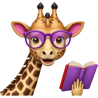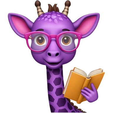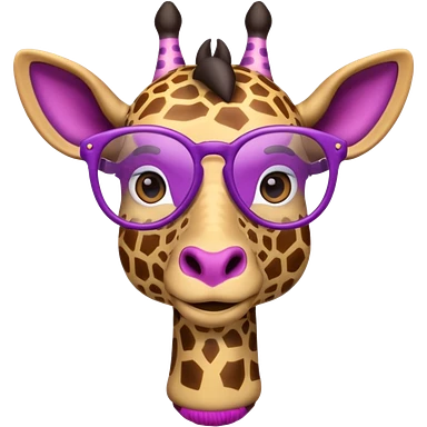 emoji de jirafa violeta con manchas rosadas agregar lentes de lectura a la tercer imagen emoji