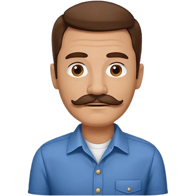 man with mustache, brown hair, 50 years old, shirt, high temple emoji