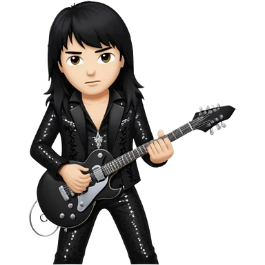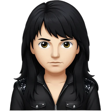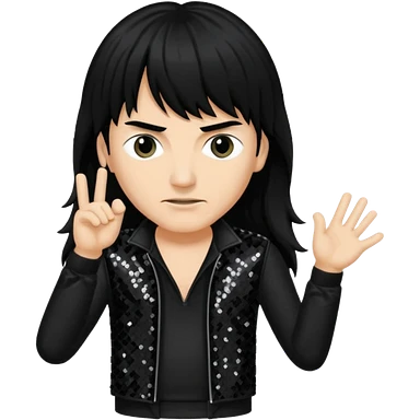 Joey Belladonna with long jet black hair, black sequin outfit emoji