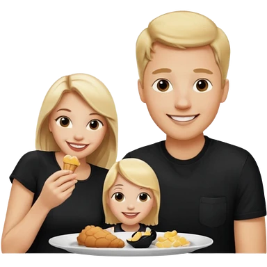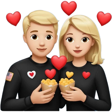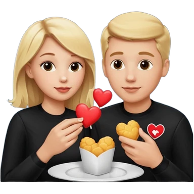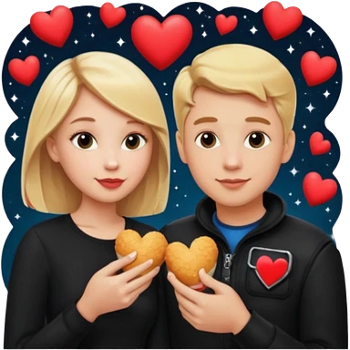 Couple with blonde hair wearing black eating chick filet hearts and outer space in the background. emoji