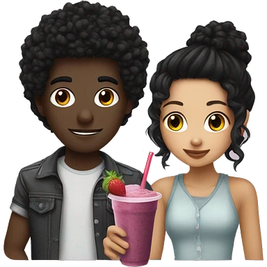 people having a date over a smoothie, the girl has curly hair and the boy emo black hair emoji