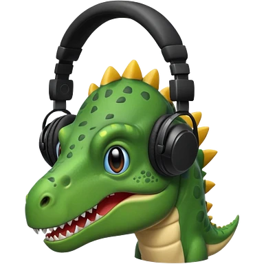 恐竜が黒いヘッドホンをつけている emoji