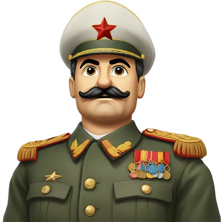 Joseph Stalin, simplified iconic style, no text, mustache, military cap emoji