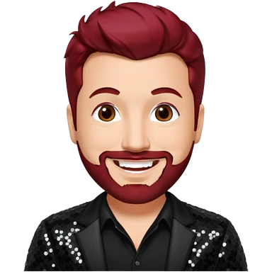 Joey Fatone from 'N Sync with dark red hair, black sequin outfit emoji