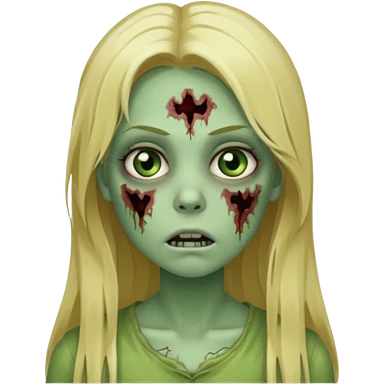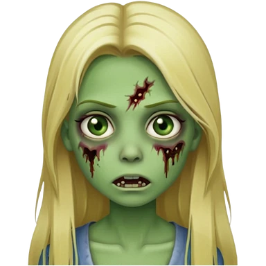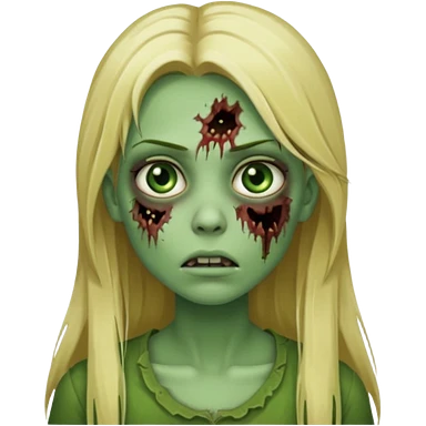 girl zombie with blonde straight long hair green skin and with no angry face and with the mouth closed emoji