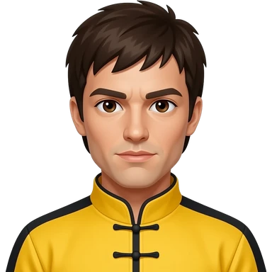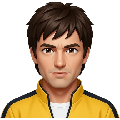 John Saxon with dark brown eyes, dark brown hair, yellow martial art outfit emoji