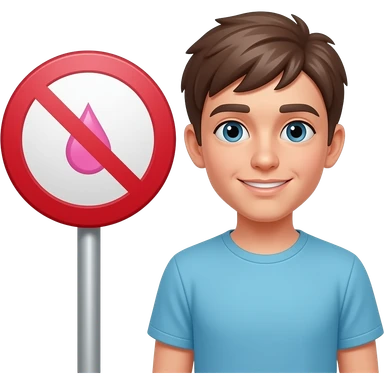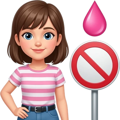 Gota rosa no símbolo de proibição do lado de uma adolescente emoji