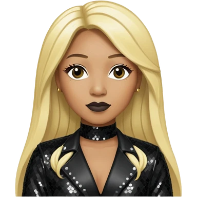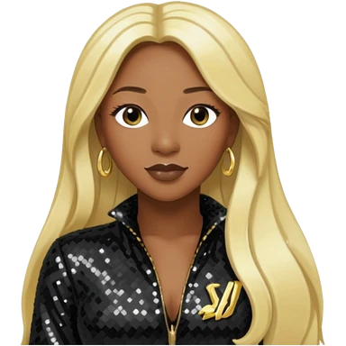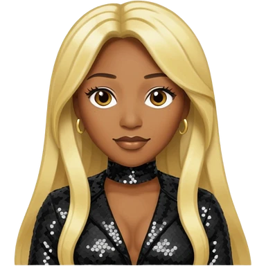 Lelee from SWV with long blonde hair, black sequin outfit emoji