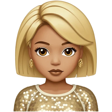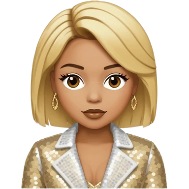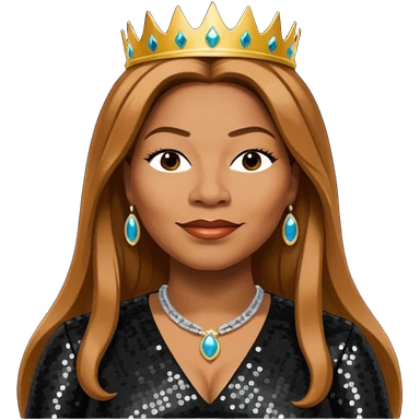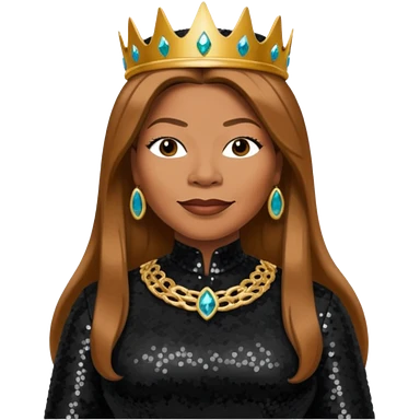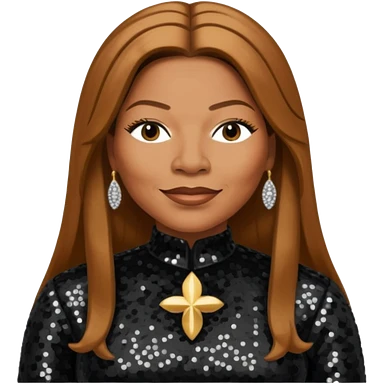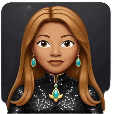 Queen Latifah with long light brown hair, black sequin outfit emoji