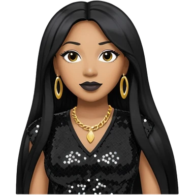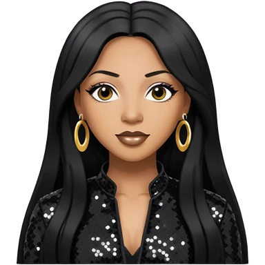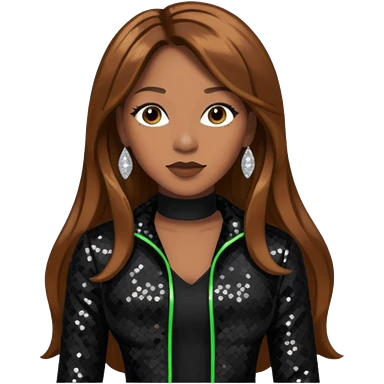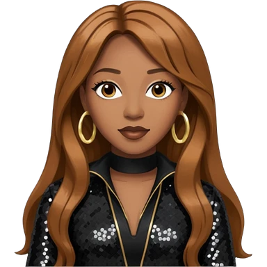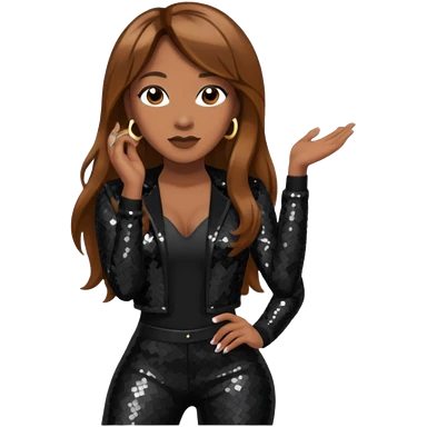 Lelee from SWV with long brown hair, black sequin outfit emoji