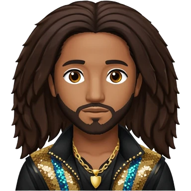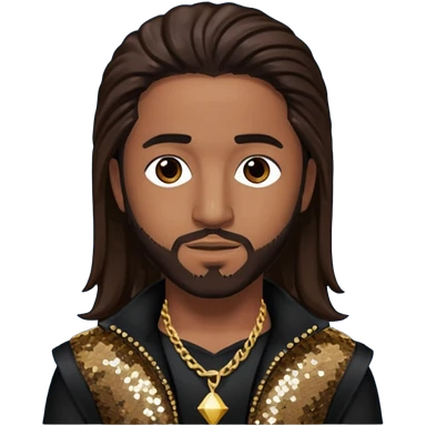 Omarion with long dark brown hair, dark brown sequin outfit emoji