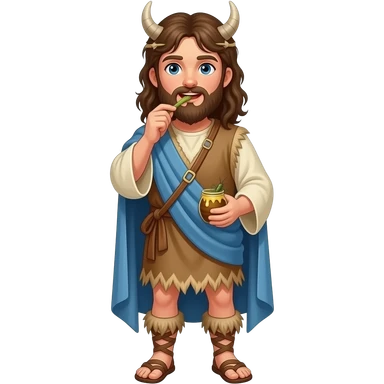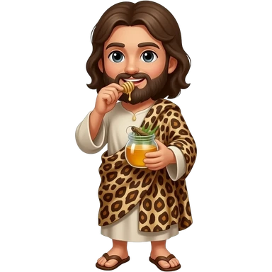 John the Baptist full bodied dressed in wild animal prints and eating wild honey and grasshoppers emoji