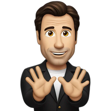 John Travolta's character from Pulp Fiction. The figure should have a puzzled expression, with slightly raised eyebrows and an open hand gesture. the character should wear a black suit with a white shirt. emoji